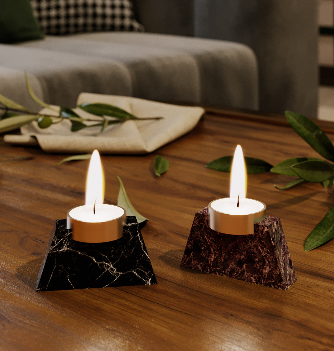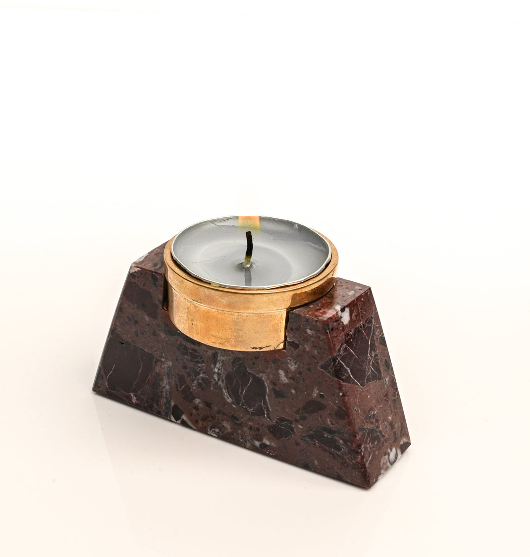 Material : Natural stone base with brass tealight holder.